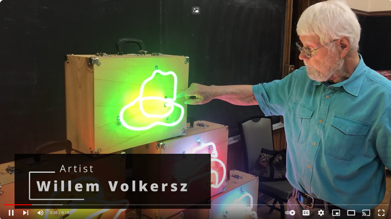 ART/OBJECTS Lab is a series of exhibitions related to ongoing collections care projects. Click the image to view the video on YouTube at ART/Objects Lab: Willem Volkersz Neon Artwork (youtube.com)