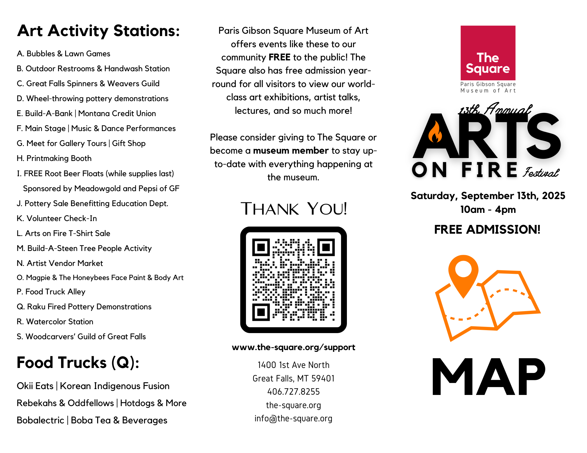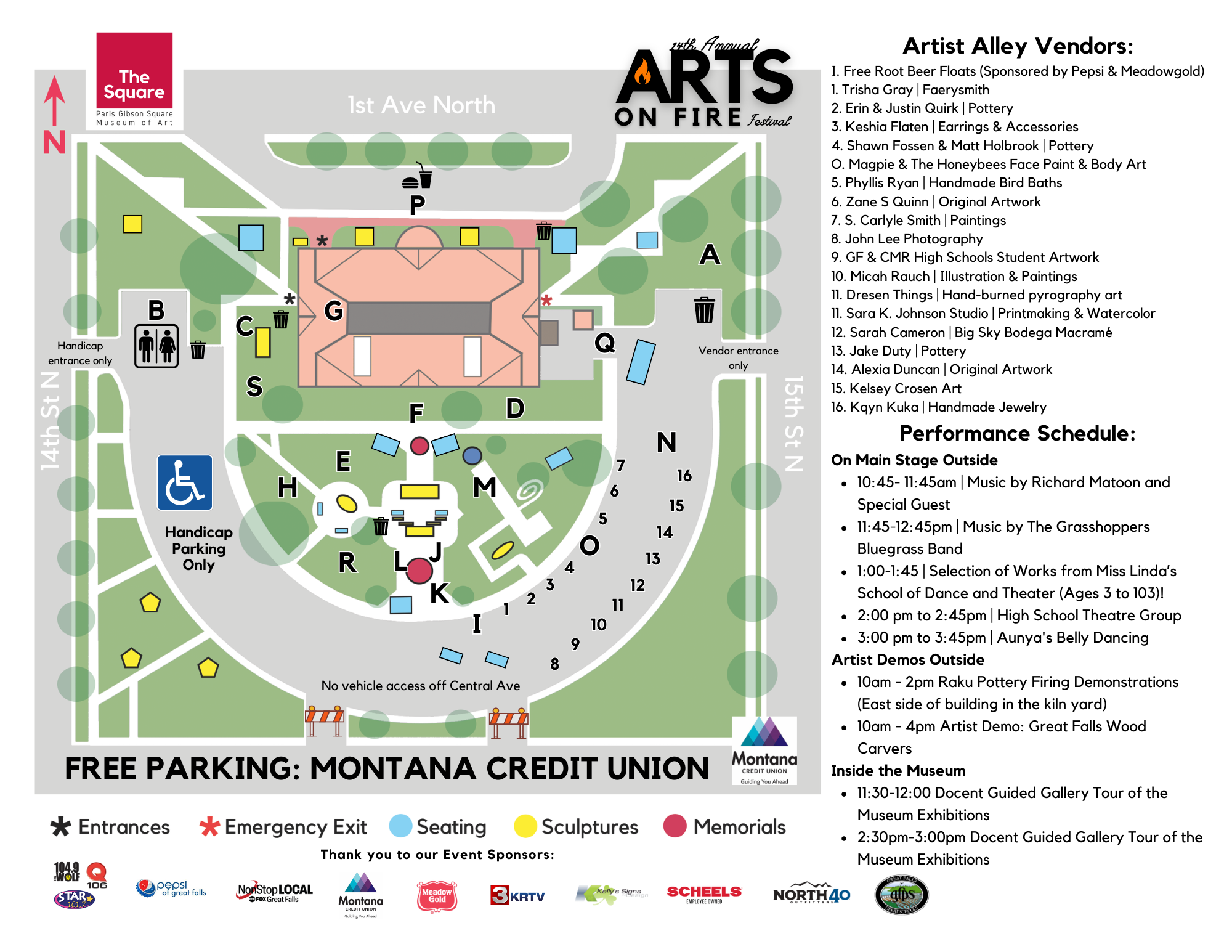 Art activities, musical performances, food trucks, gallery tours, artist alley vendor market, art demonstrations, root beer floats, pottery sale, scavenger hunt, and more!